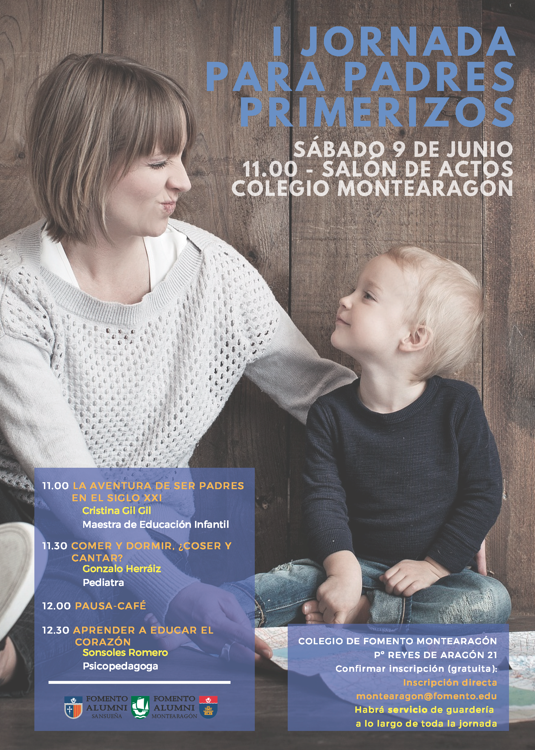 Al no tener criterios claros, muchos padres siguen la política de mera supervivencia sin ninguna directriz coherente. Esta es la Primera Jornada de una serie que presenta las líneas maestras de lo que podríamos llamar una “pedagogía del sentido común”. Se tratan con profundidad temas como la diferencia entre educar y manipular, el papel educativo de los padres, el buen uso del tiempo libre y cosas semejantes. Además, se intenta ordenar la psicología evolutiva del infante, pues, como el niño no es un ser estático sino terriblemente dinámico y cambiante, todos los planteamientos y las estrategias educativas dejan de ser eficaces al pasar a la siguiente etapa. Por último, se abordarán cuestiones más prácticas: cómo conseguir que tu hijo coma, duerma a una hora civilizada, se olvide de una vez del maldito chupete, deje de mojar las sábanas, y todo lo que nos podáis ir sugiriendo. Lo organiza la Asociación Montearagón Alumni y está abierto a todos los antiguos alumnos y a cuantas familias quieran asistir.